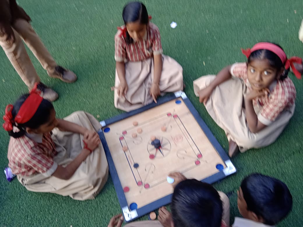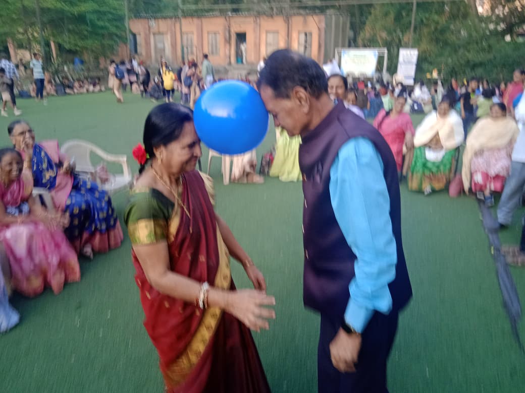 After that, various activities were conducted with great enthusiasm and joy on the green playground, such as Snakes and Ladders, Carrom, ring toss, rubber ball throwing, carrying a ball behind the back and covering a fixed distance without dropping it, walking a fixed distance while balancing cups on the head without letting them fall, musical chairs, storytelling, solo songs, and dance performances. Through this programme, a sense of love and bonding between two generations was created. The children took a pledge that when the time comes to take care of their parents and elders, they will not send them to old-age homes. After that, everyone participated in group dancing to music. At the end, snacks and tea were served to all. The programme concluded with a vote of thanks delivered by Headmaster Mr. Vairagar Sir.